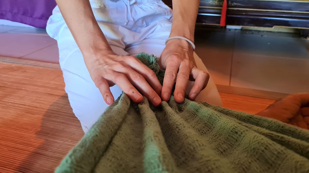 En janvier 2022, je me formais aux savoir-faire du Rebozo, ensemble de techniques douces de bien-être et de relaxation, auprès de Virginie Derobe, à l’origine de l’école du Rebozo en France, formée elle-même directement auprès de Naoli Vinaver, sage-femme mexicaine.