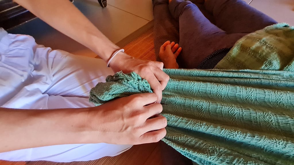 Aujourd’hui, je propose le Rebozo comme soin individuel et en accompagnement sur les cours de yoga pré et post-natal ainsi qu’en co-création avec des sonothérapeutes.